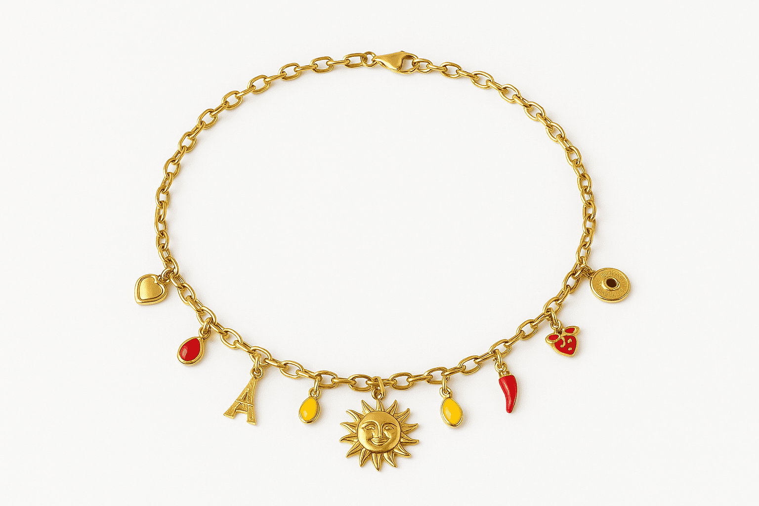 Le collier « Héléna » est une pièce délicate en plaqué or ornée de charms scintillants, parfaite pour ajouter une touche de poésie et d’élégance à votre quotidien.