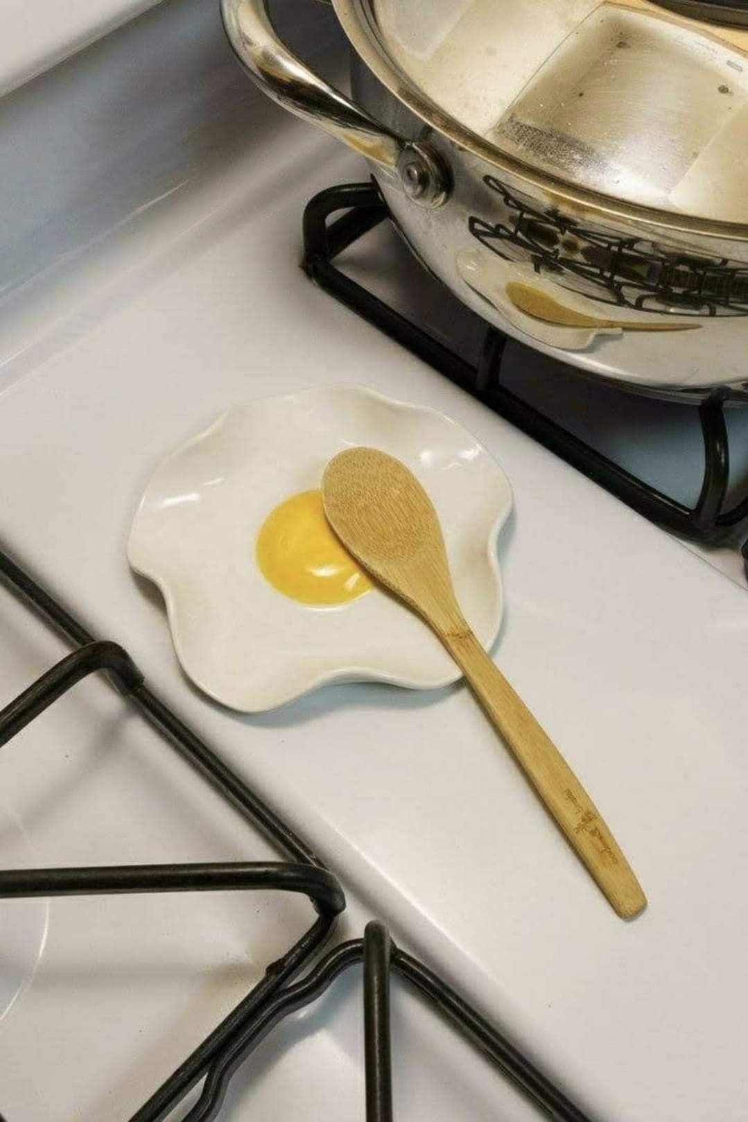 Ajoutez une touche de fantaisie à votre cuisine avec « Bénédicte », le repose-cuillère en céramique en forme d’œuf au plat, aussi pratique qu’irrésistiblement drôle.