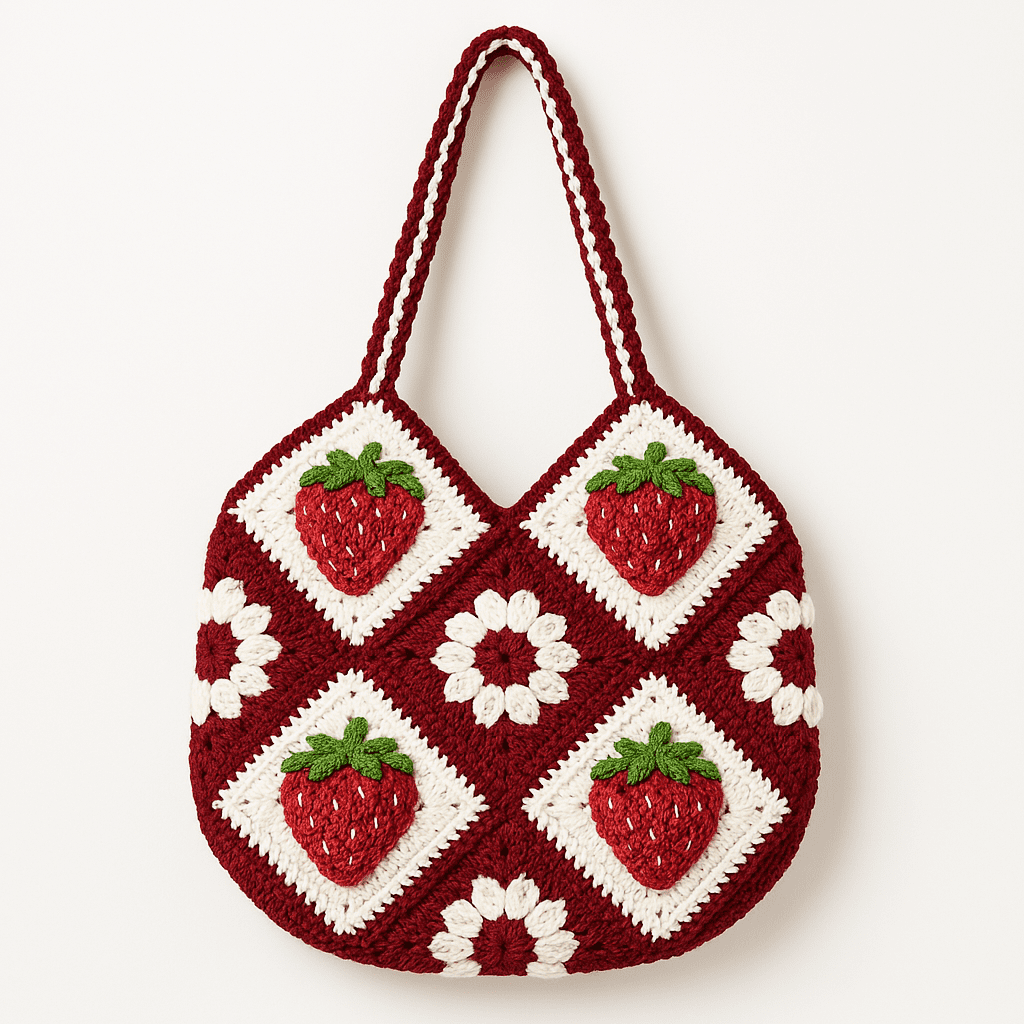 Laissez parler votre style avec le sac « Capucine », une création pleine de charme et de fantaisie. Réalisé à la main en crochet, ce sac aux teintes rouge et beige s’orne de délicates fraises et de jolies fleurs, pour une touche gourmande et poétique.