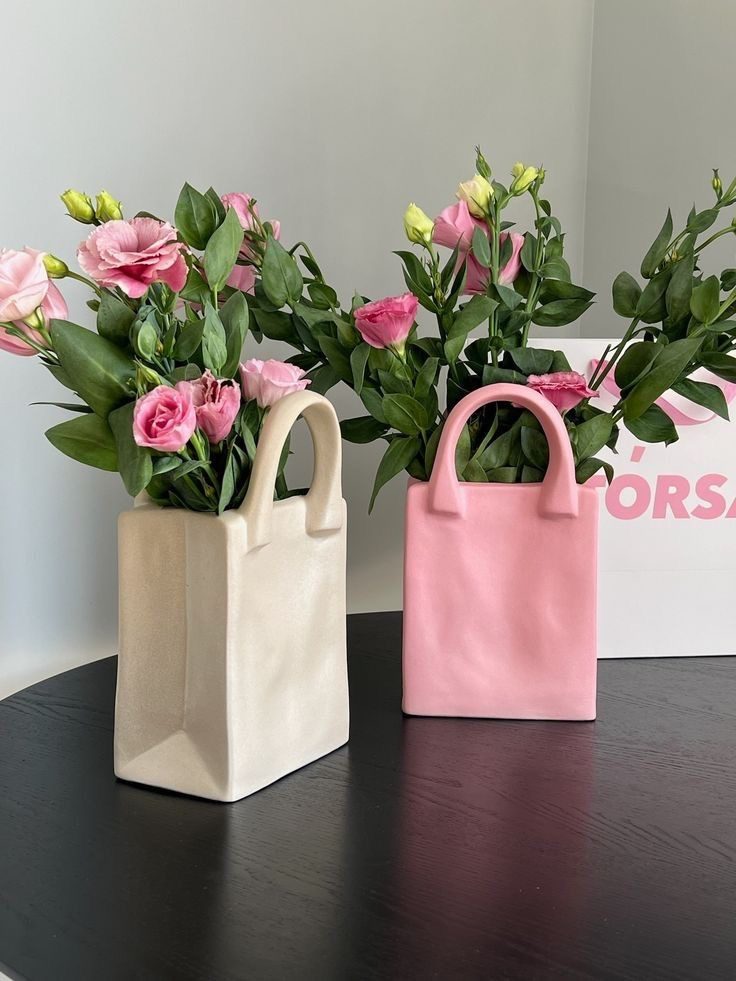 Le vase « Lola », en céramique brillante et en forme de sac de shopping, décliné en rose poudré ou beige sable, apporte une touche déco chic et originale à votre intérieur.